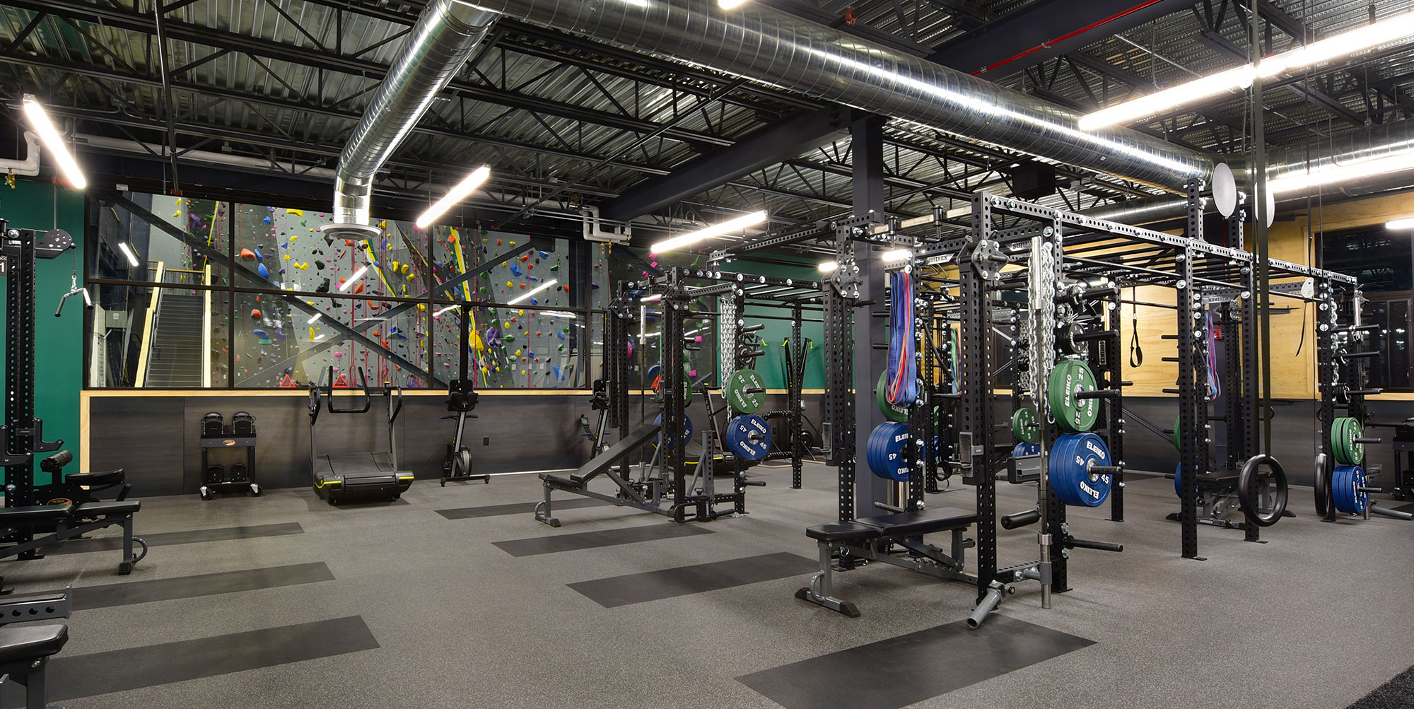 HAF offers a full gym experience including a glass enclosed 45’ high rock climbing wall as well as a separate bouldering room located on the second floor, free and machine weight rooms, 2nd floor cardio equipment looking over the rock climbing wall, yoga instruction room as well as a children’s playroom. The men and women’s full locker rooms are equipped with saunas and showers.